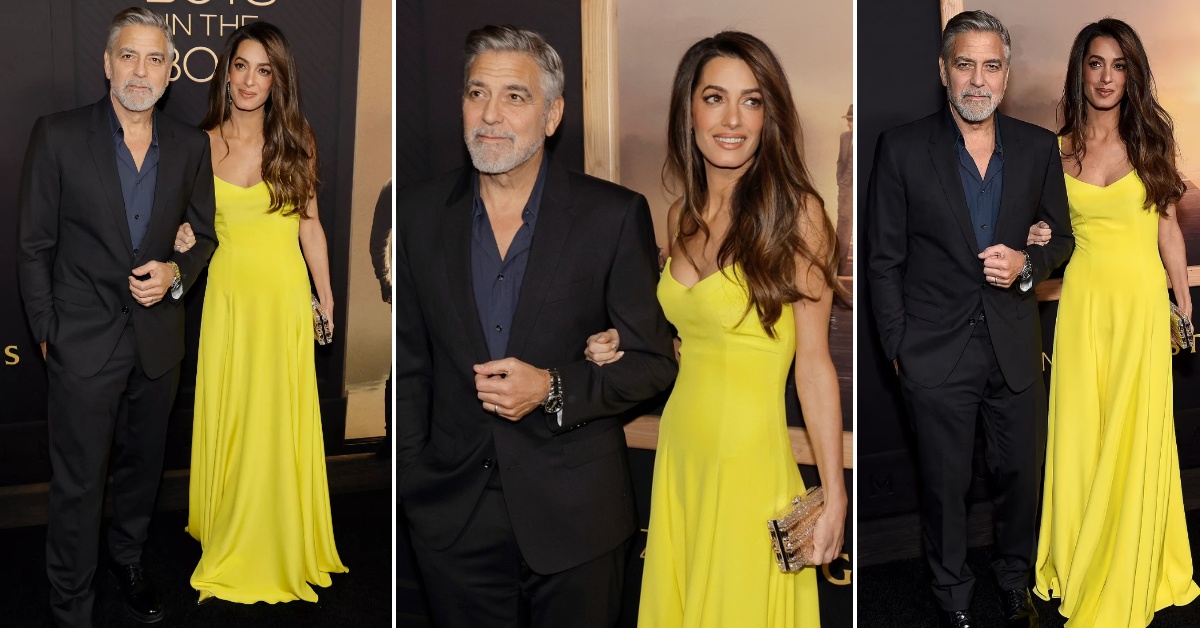 45-годишната адвокатка го придружуваше 62-годишниот актер и режисер на премиерата на неговиот најнов филм „The Boys In The Boat“ во Лос Анџелес. Таа изгледаше елегантно во долг жолт фустан.