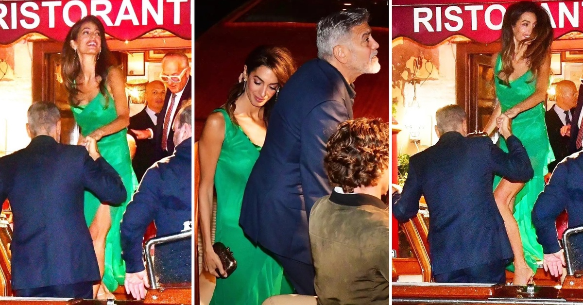 На романтичната вечера, Амал шармираше во смарагдно-зелен фустан, додека Џорџ носеше тегет костум.