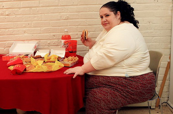 Симпсон консумира огромни количини брза храна и се обидува да се движи што помалку, за да согорува колку што е можно помалку калории. За да ја постигне својата цел, таа треба да внесува 12 000 калории дневно, што е 6 пати повеќе од препорачаните дневни потреби за жени.