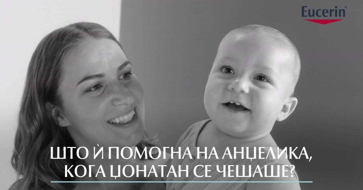 На почетокот од мојата бременост, воопшто не мислев на мојот атопичен дерматитис. Едноставно бев многу среќна дека сум бремена. Но во 11тата или 12тата недела забележав дека кожата ми станала многу сува. Да…И додека бев бремена, мојата најголема желба беше детето да не го наследи ова. Јас бев во многу лоша состојба за време на бременоста, па не сакав и тоа да биде како мене. Сѐ започна со едно поинакво породување од она што го очекував. А јас сум акушерка. И кога конечно ќе се прибереш, мислиш дека сѐ е прекрасно, бебето е здраво и дома е со тебе, а ти се чувствуваш среќна со него... и тогаш седнуваш до креветчето, го земаш, а тоа е толку мало, нема ни 2 месеци... и го гледаш како се чеша без да може да се сопре. Тоа ми го скрши срцето. Бев вџашена од помислата дека моето мало бебе може да биде како мене. Всушност мојата историја со Eucerin е долга. Мајка ми ми има кажано дека ме мачкала и мене со крема кога сум била мала. Тоа ми помогнало. Затоа тоа беше првото нешто кое што го купив од аптеката за нега. Помогна веднаш. На почетокот го земав истиот Atopi крем и за Џонатан – му помогна зацрвенилото на кожата и за сувите делови кои што го чешаа... а по нанесувањето веќе немаш неодолива желба да ја чешаш кожата до крв. Се чувствуваш многу подобро после тоа. Ако некоја млада мајка го сподели со мене стравот дека нејзиното новородено може да има атопичен дерматитис, би ѝ кажала: Дури и да е така, тоа не е нешто кое што може толку сериозно да ти го наруши животот.