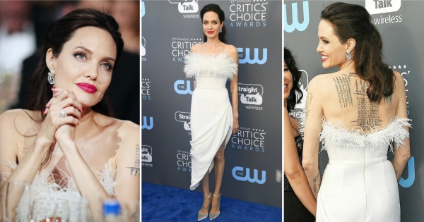 Анџелина Џоли блесна во бела креација која ѝ ги отскри големите тетоважи на Critics' Choice Awards