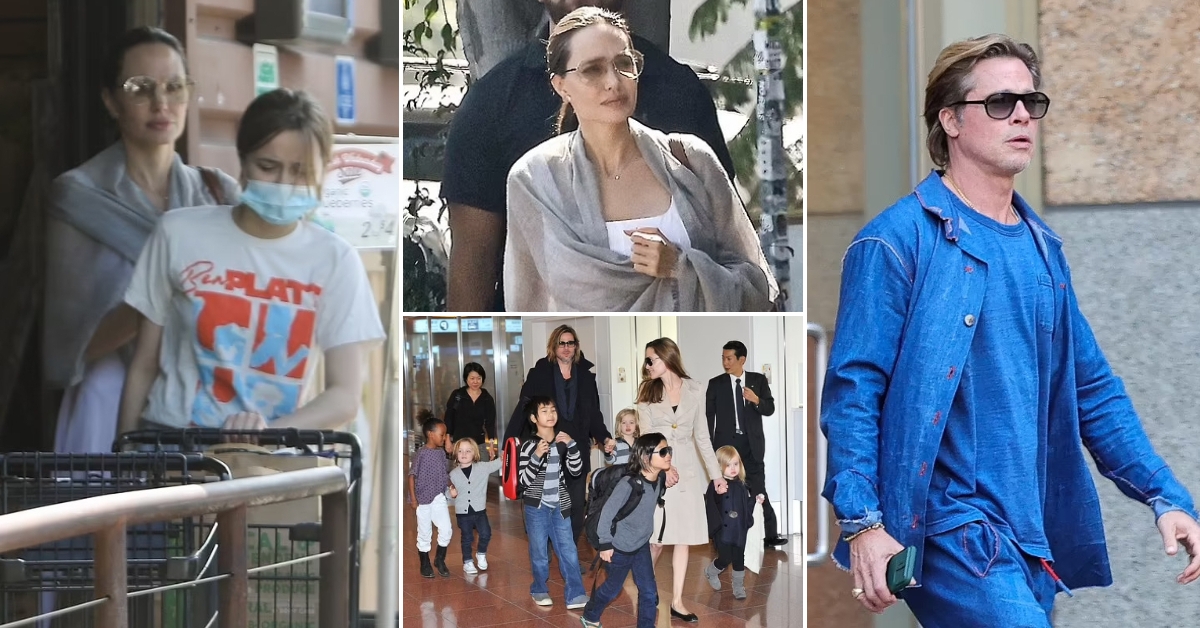 47-годишната Оскаровка носеше долг бел фустан и сива марама додека купуваше намирници во продавница во Јужна Калифорнија со 14-годишната ќерка, која е едно од шесте деца кои ги има со Бред Пит.