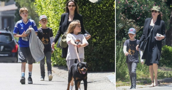 Изминатиот викенд, Џоли беше на прошетка во Малибу со ќерката Шајло, близнаците Вивиен и Нокс и семејното куче.