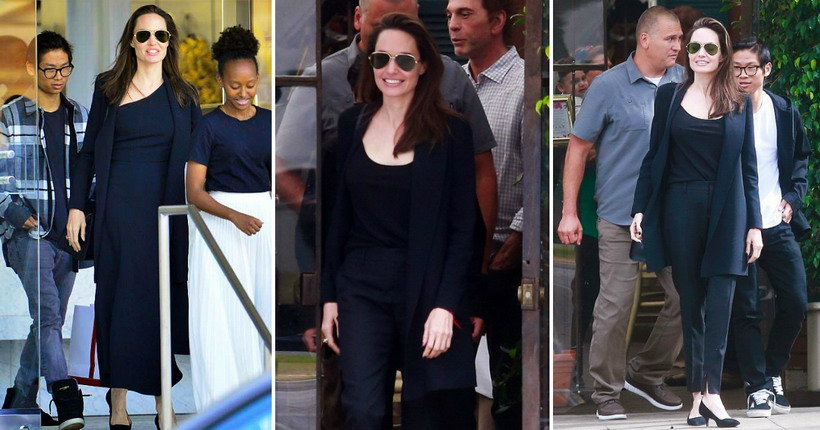Еден ден претходно, таа беше пресретната од група папараци кога заедно со 14-годишниот Пакс изгледуваше од ресторан во Беверли Хилс.