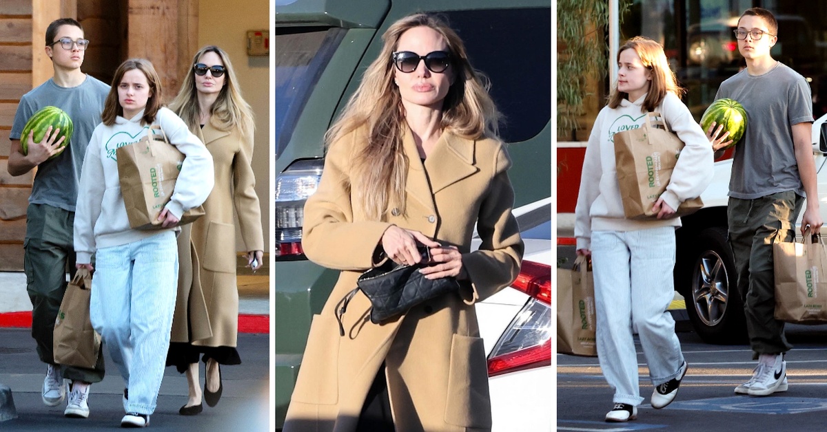 49-годишната актерка беше пресретната од папараците додека заедно со близнаците Нокс и Вивиен излегуваше од продавницата.
