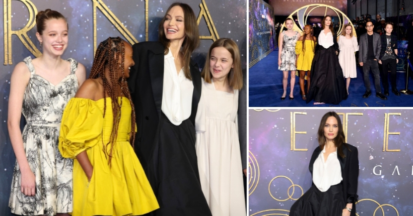 Анџелина Џоли не се разделува од децата ниту за време на нејзината промотивна турнеја низ светот за филмот „Eternals“. 46-годишната ѕвезда со пет од децата чекореше на премиерата во Лондон.