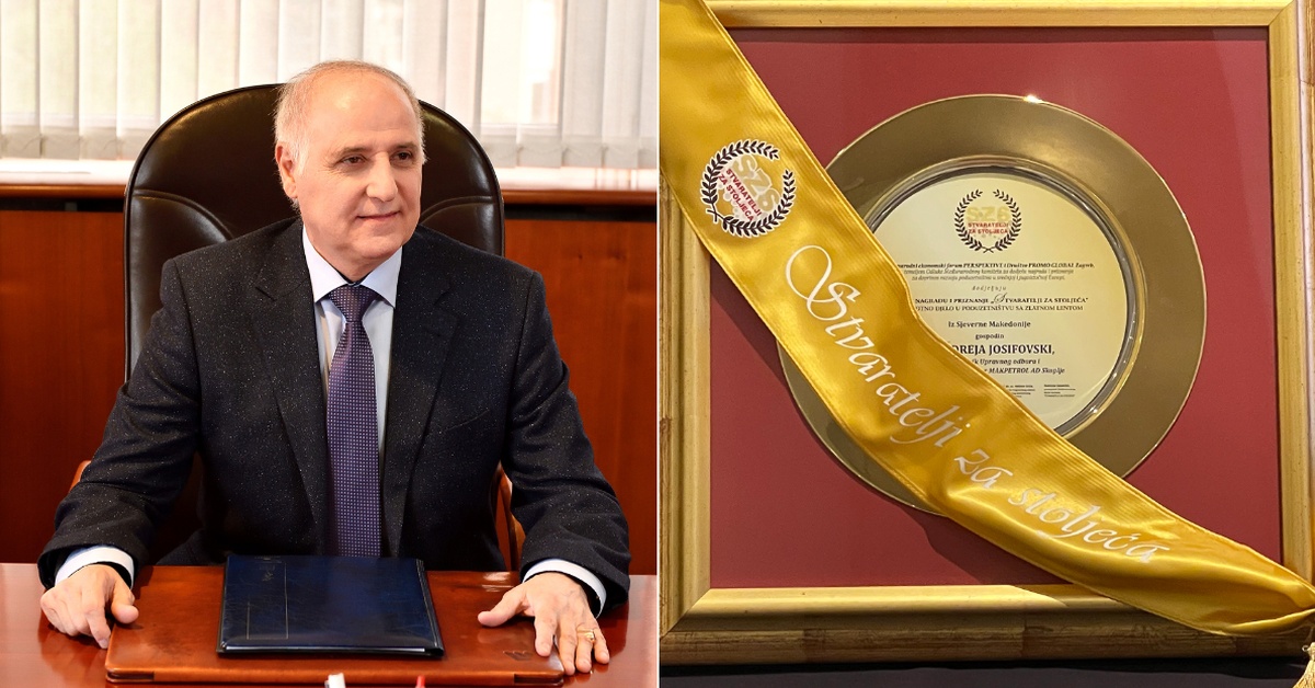 Претседателот на Управниот одбор на Макпетрол АД Скопје, г. Андреја Јосифовски, ја доби престижната Голема награда со златна лента и признание за животно дело „Креатори на векови“ за исклучителни постигнувања и развој на претприемништвото на подрачјето на Средна и Југоисточна Европа.