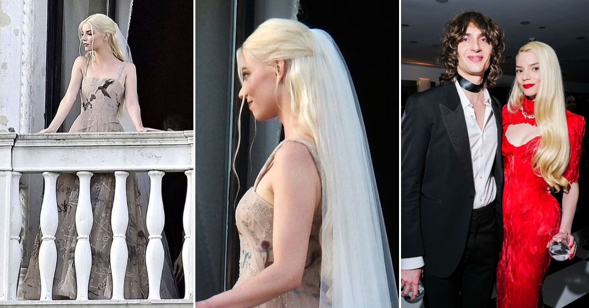 За големиот ден, 27-годишната ѕвезда од „The Queen’s Gambit“ избра нестандардна бежова креација од Диор. Таа беше „уловена“ од папараците додека позираше на еден од балконите на палатата Pisani Moretta, лоцирана покрај Големиот канал.