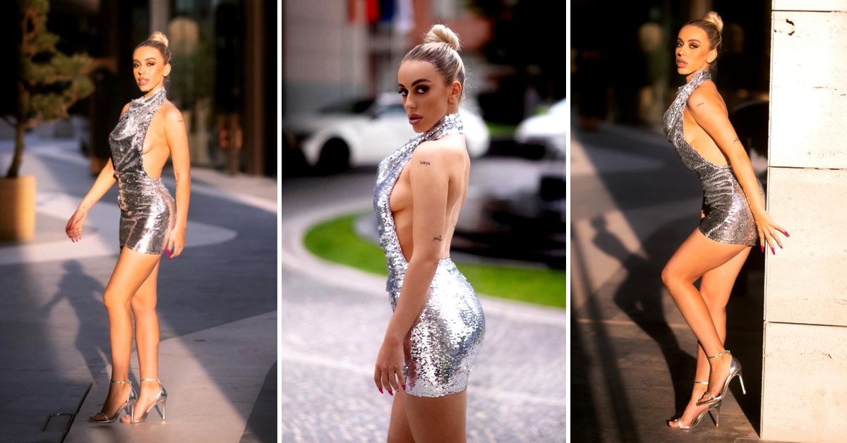 Македонската пејачка привлекуваше внимание во блескава сребрена креација, која ги отскриваше нејзините нозе и нејзиниот грб.