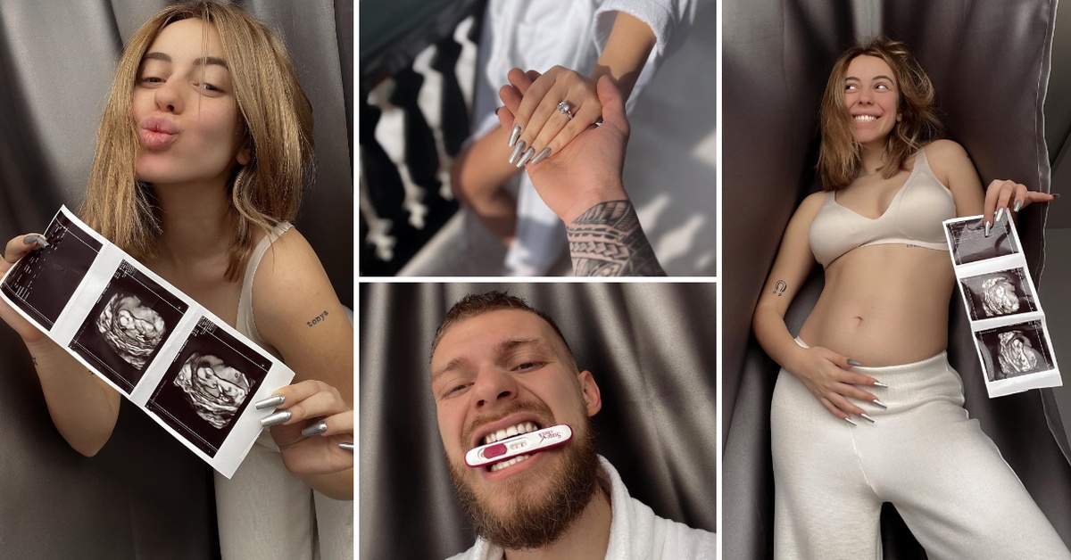 На нив, Антониа позира покажувајќи го трудничкото стомаче и држејќи снимки од ултразвук, додека нејзиниот вереник Роберт Спасенцовски го покажува позитивниот тест за бременост.