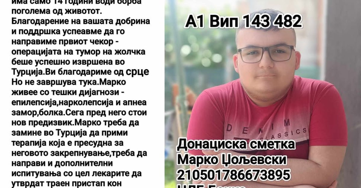 Доколку сте во можност, донирајте за 14-годишниот Марко: