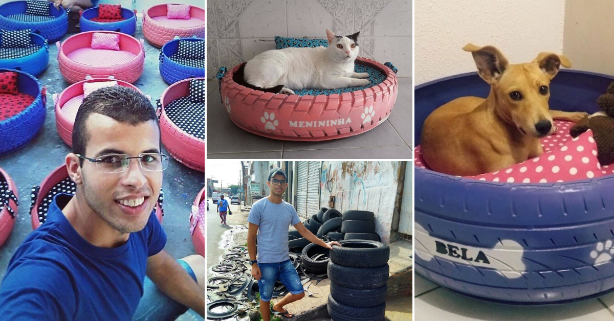 Амарилдо Силвио Фиљо од Бразил пред две години забележал дека многу искористени гуми стојат нефункционални на паркингот каде што работел. Тој започнал да ги собира и да ги пренаменува во прекрасни кревети за улични кучиња и мачки.