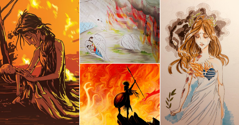 Артисти со трогателни цртежи го изразија своето сочувство за настраданите во пожарите во Грција