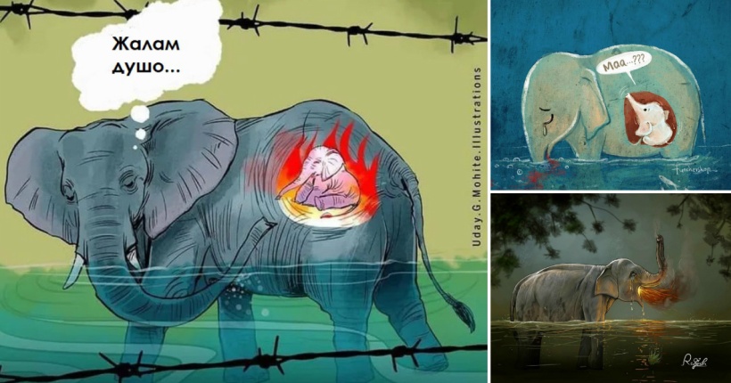 Артисти со трогателни цртежи за бремената слоница која умре откако изеде ананас полн со петарди