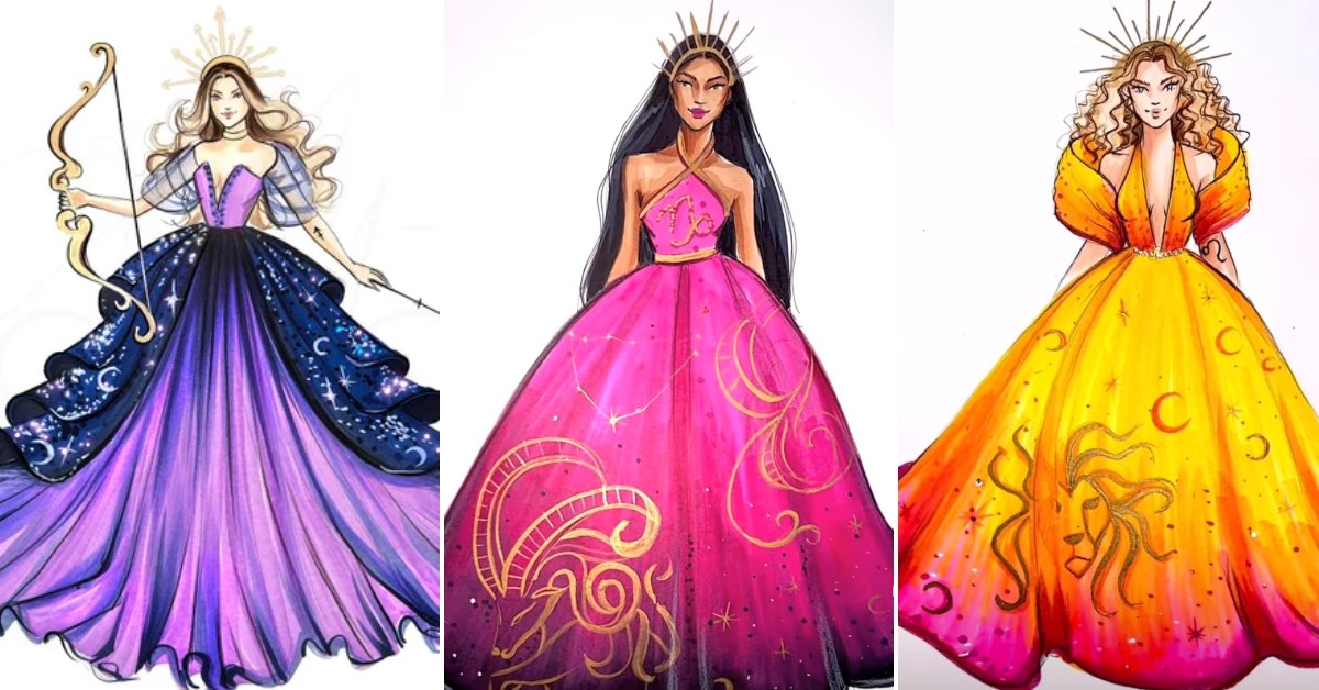 Артистка илустрира фустани инспирирани од хороскопските знаци, резултатот ѝ носи огромна популарност