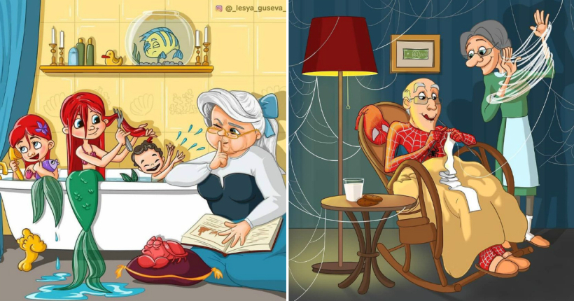 Талентираната Лесја Гусева создаде фотосеријал наречен „Пензионери“, во кој Бела, Ѕверот, Ариел, Тор, Халк и многу други ликови, се прикажани како стари лица.