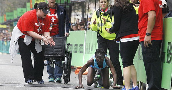 29-годишната атлетичарка од Кенија се натпреварувала на маратонот во Остин, Тексас и била многу блиску до победа. На неколку километри пред целта, таа ги предводела женските натпреварувачи, но нејзиното тело започнало да откажува. Кога целта веќе била пред нејзините очи, таа паднала на земја. Медицински лица веднаш дотрчале да ѝ помогнат и да ја стават во количка, но таа не се откажала.
