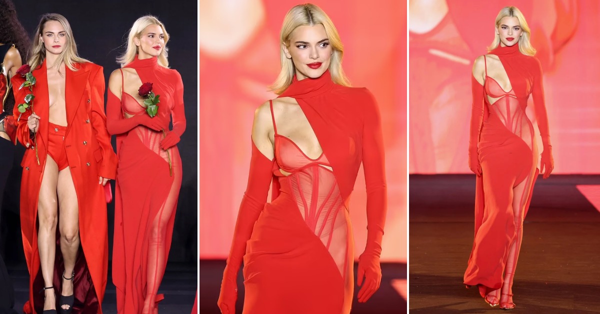 28-годишниот модел ја покажа својата нова руса коса облечена во делумно проѕирна црвена креација. Таа ги истакна своите усни со впечатлив црвен кармин кој совршено се вклопи во нејзиниот изглед.