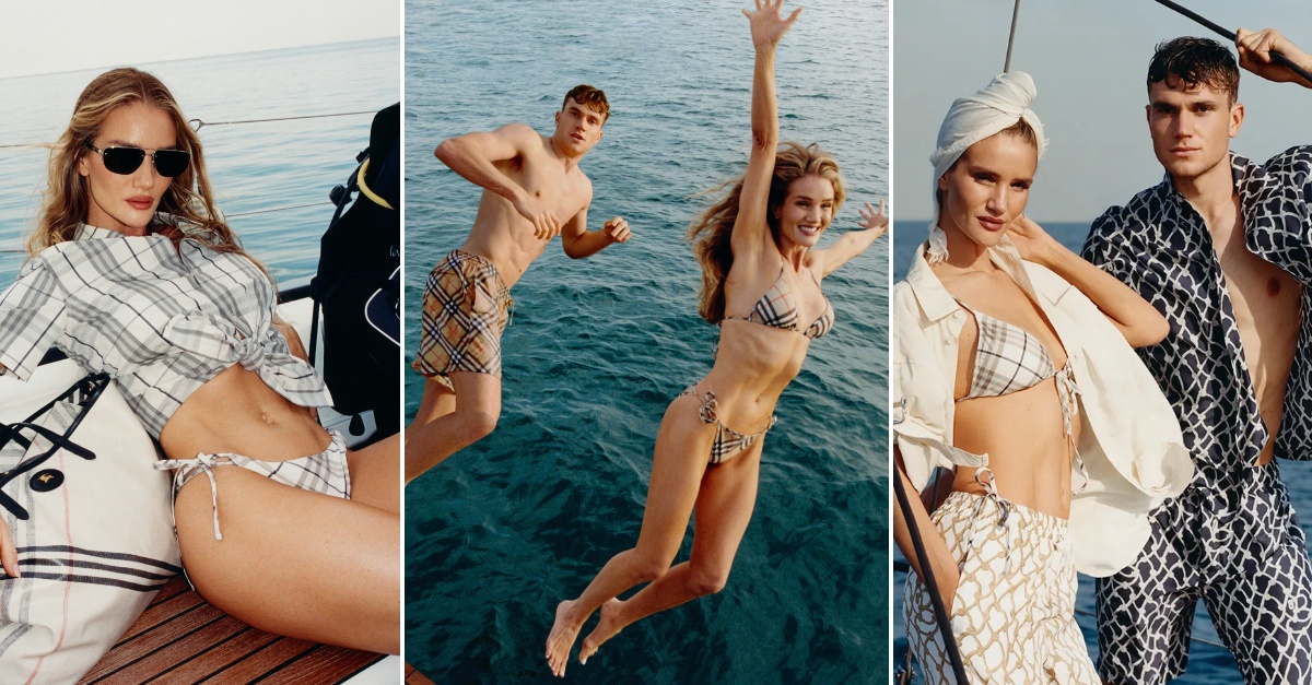 37-годишната убавица, која во минатото беше дел од ангелите на Victoria’s Secret, позираше во бикини покрај тениската ѕвезда Џек Дрејпер. На фотографиите од кампањата „Wish You Were Here“, Роузи и Џек презентираат дел од моделите од летната колекција на британскиот луксузен моден бренд.