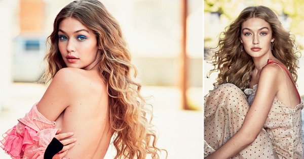 На насловната страница, Џиџи позира во розов чипкаст фустан од Gucci.
