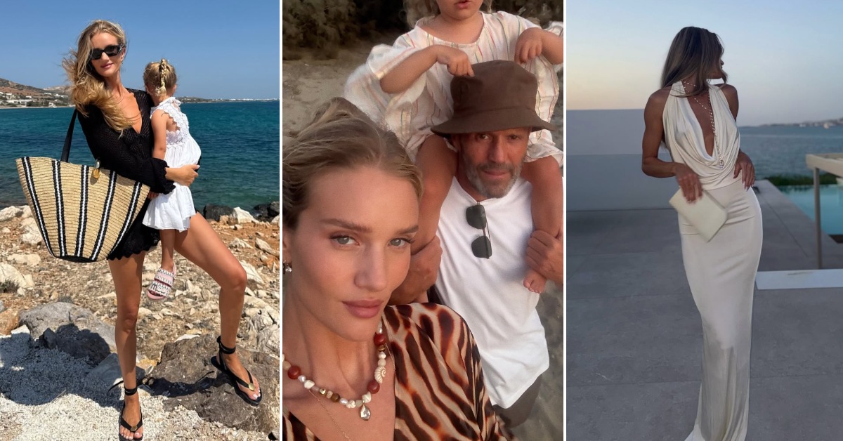 Роузи Хантингтон-Вајтли и Џејсон Стејтам ги одведоа своите две деца на егзотичен одмор во Грција.
