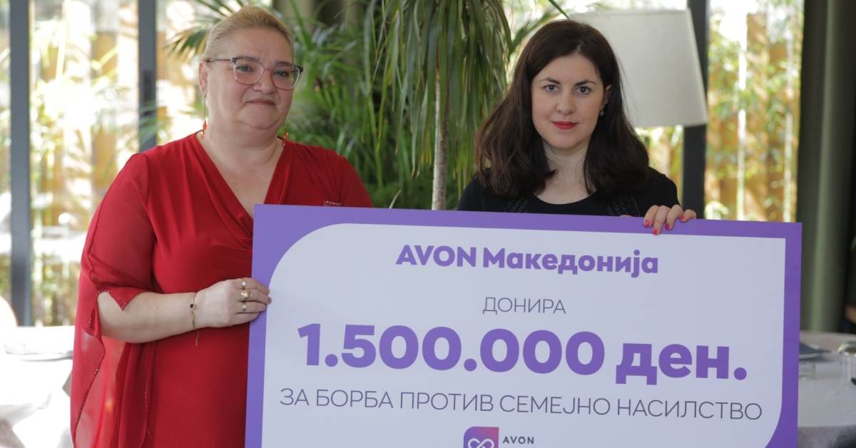 Оваа година, симболично само на ден после интернационалниот ден на жената, Avon Македонија повторно донира износ од 1.500.000 ден. на кризниот Центар Надеж, за реализација на проектот ВИЕ ЗБОРУВАТЕ – НИЕ СЛУШАМЕ. Средствата се собрани од продажбата на АVON производите означени со знакот за бесконечност - Стоп за насилство врз жени. 100% од профитот од овие производи е наменет за фондацијата Борба против семејно насилство.