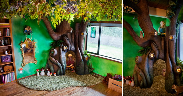 „Мојата ќерка сакаше бајковито дрво во својата соба во кое би можела да седи и да чита книги и да се искачува на гранките“ – пишува креативниот татко на Imgur, каде ги објави фотографиите.