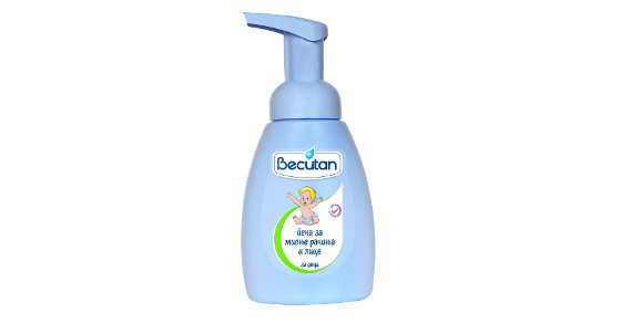 Becutan пената за миење рачиња и лице е особено блага формулација на течен сапун, спакуван во посебен тип на амбалажа кој овозможува создавање на кремаста пена, при секое истиснување на содржината. На овој начин, секојдневната рутина на миење раце и лице ќе стане забавна навика за вашите најмили и сето тоа придружено со препознатливиот мирис на Becutan!