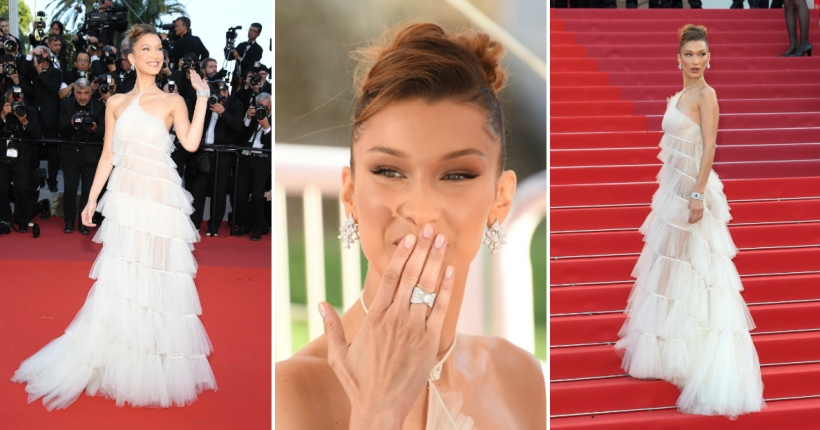 22-годишниот модел самоуверено чекореше на црвениот тепих во Кан во деликатна креација од високата мода на Диор и чевли од Кристијан Лобутин.