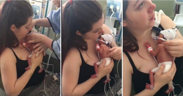 Видео во кое нова мајка за првпат го зема во прегратка своето предвреме родено бебенце и нежно го гали, додека солзи извираат од нејзините очи, нема да ве остави рамнодушни.