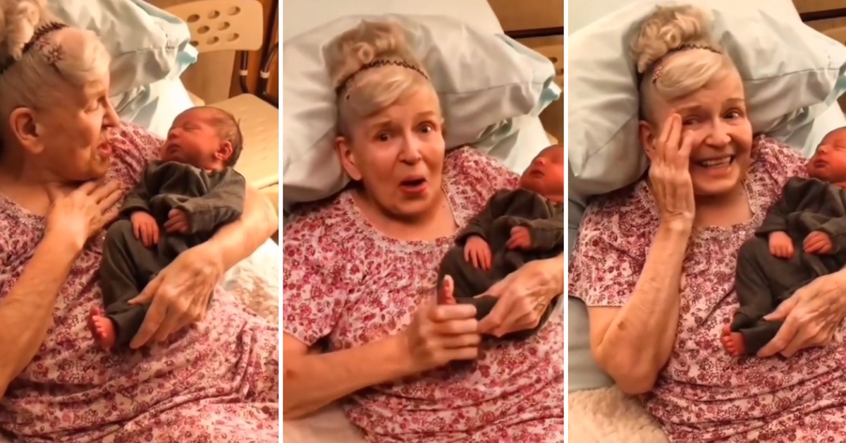 Слатката реакција на 90-годишна жена, кога за првпат ќе ја земе в раце новородената праправнука, ќе ви го згрее срцето.