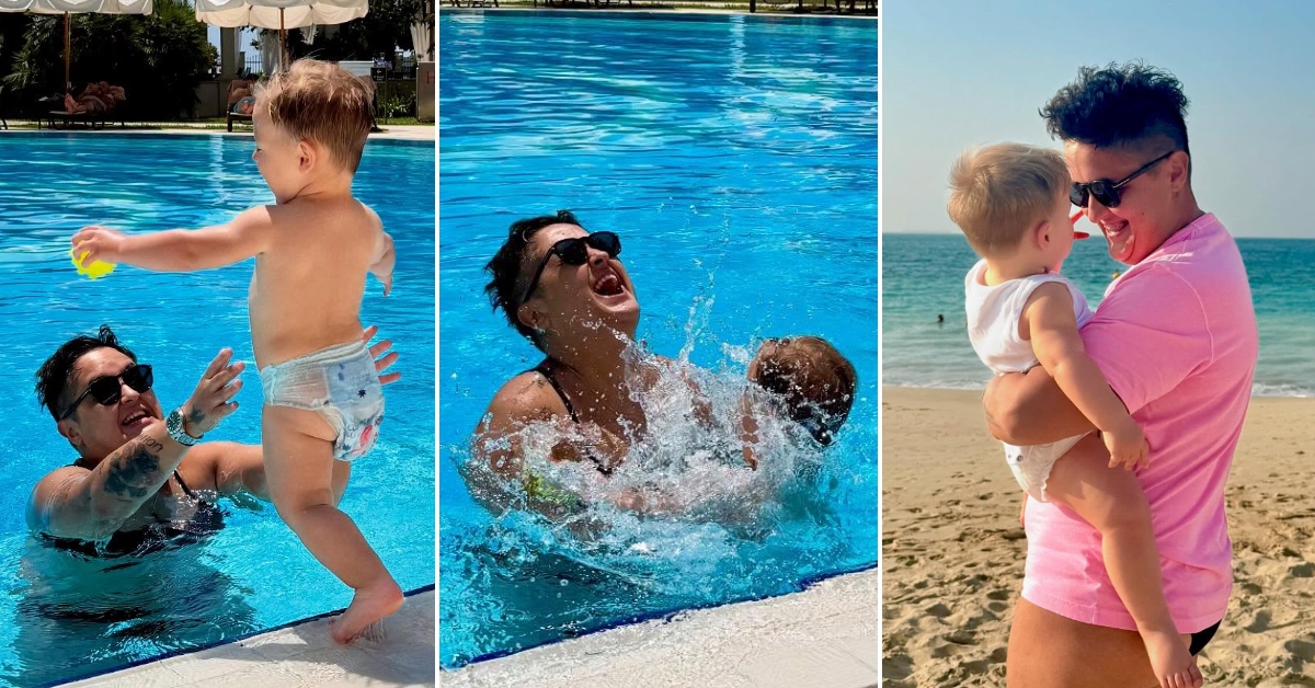Бестрашно скока во базенот кај мајка си: Марија Шерифовиќ ужива со синчето Марио на заслужен одмор