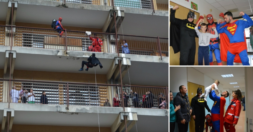 Суперхероите претпразнично се дружеа со дечињата и им мамеа насмевки за да им го олеснат престојот во болницата. Погледнете како изгледаше симулационата вежба „Хероите на моето детство“: