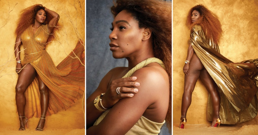 37-годишната тенисерка смело позираше во златни креации за фотографиите кои не се обработувани во Фотошоп.