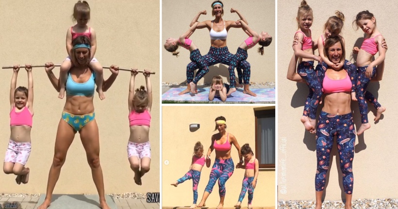 Мајката од Унгарија го одржува своето тело во фит форма, додека истовремено ги чува и забавува трите мали ќеркички.