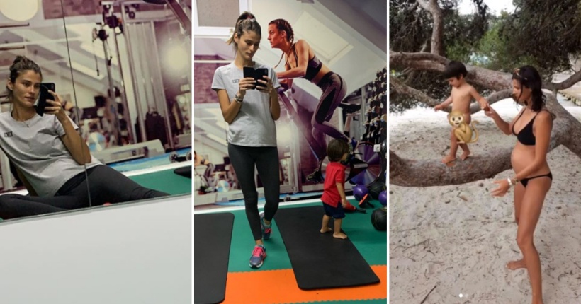 31-годишната манекенка, која деновиве влегува во деветтиот месец од бременоста, сподели фотографии на кои вежба во фитнес клуб. Покрај неа е нејзиното двегодишно синче Вања.