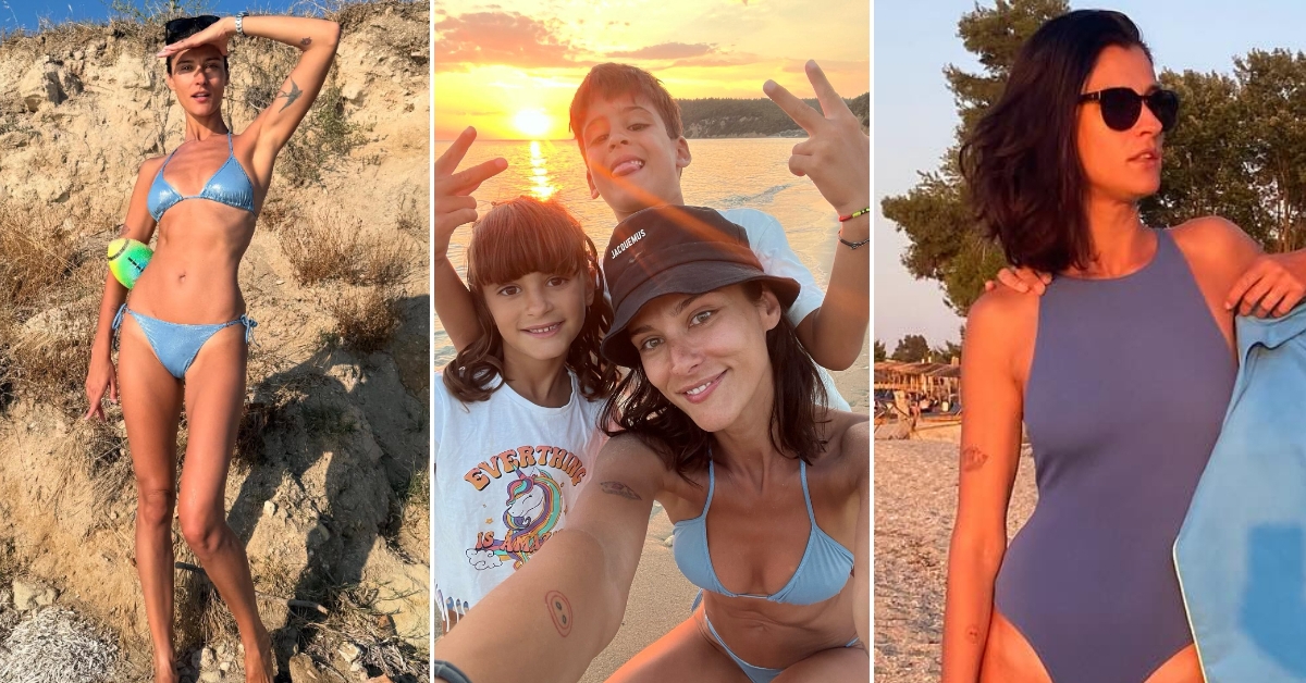 Македонската манекенка позира без шминка во секси бикини на плажа, игра со децата, пробува вкусни јадења и се дружи со пријатели на фотографиите од летните денови.