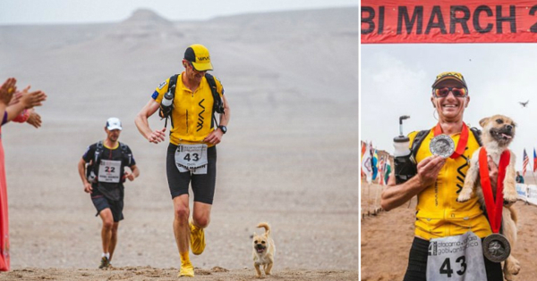 Дион Леонард се подготвувал да ја продолжи трката на вториот ден од маратонот кога забележал како мало куче гледа во него. 41-годишниот натпреварувач бил изненаден кога малото животно започнало да трча по него, но бил убеден дека брзо ќе се откаже. „Додека трчавме си помислив, ова мало куче нема да издржи долго покрај мене, но тоа трчаше цел ден и истрча 37 километри“ – вели Дион.