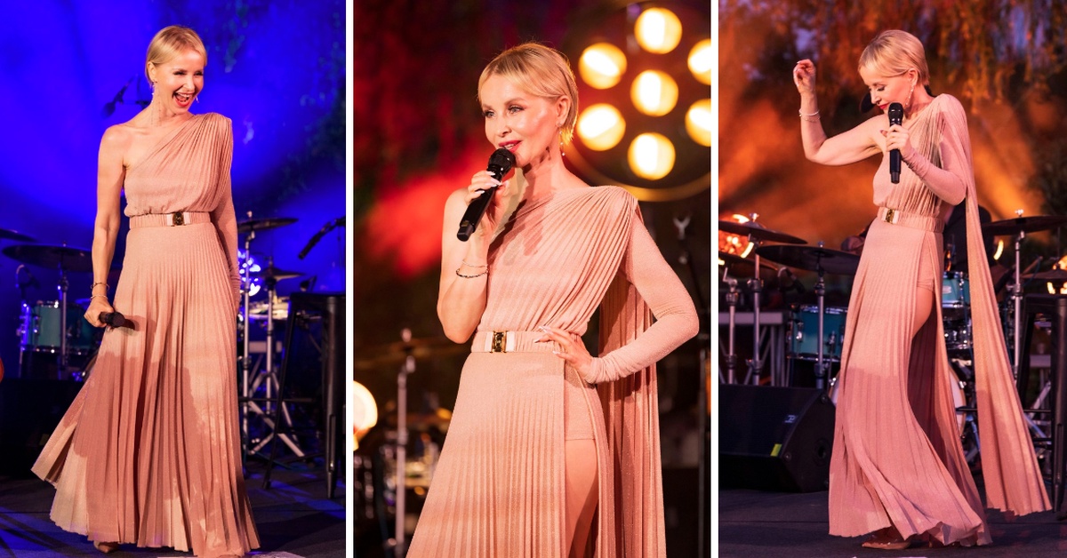 53-годишната хрватска пејачка изгледаше феноменално во шик креација со плисирани делови која ѝ прилегаше одлично.