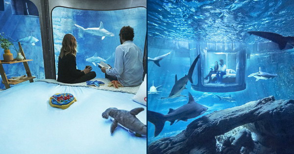 Спалната соба со проѕирни ѕидови се наоѓа 10 метри под вода во аквариум со 35 ајкули. Преку натпревар, Airbnb ќе избере три пара кои во текот на три различни ноќи следниот месец ќе престојуваат во специјалната соба.