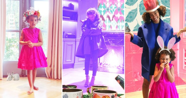 На фотографиите, 4-годишната ќерка на Бијонсе и Џеј Зи носи розов фустан, а 34-годишната музичка дива позира во лежерна комбинација пред камин.