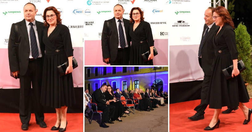 Битолската градоначалничка позираше на црвениот тепих заедно со сопругот, а за свеченоста избра црна креација со преклоп и дискретна сребрена декорација.