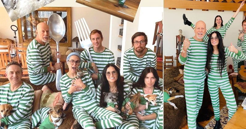 Бившите Деми Мур и Брус Вилис во складни пижами со своите ќерки и нивните партнери во изолација