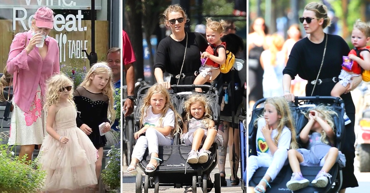 Блејк Лајвли има полни раце кога излегува со трите деца.