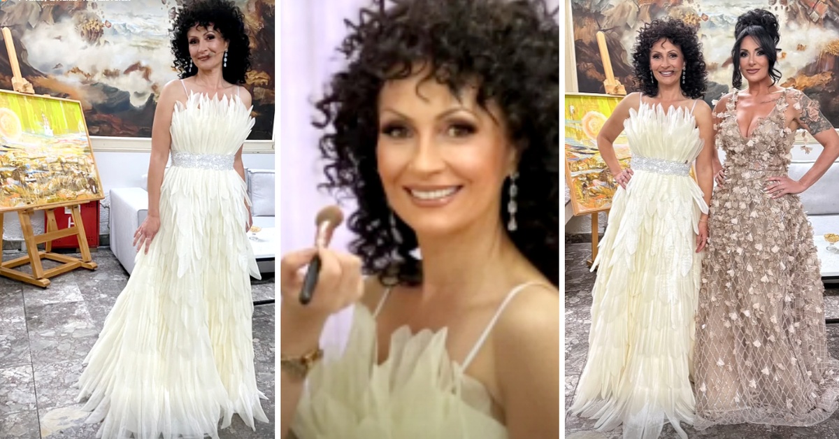 „Совршено изработенo ремек-дело што зрачи со етерична убавина и префинета сензуалност. Рачно наредените латици, налик на пердуви, грациозно се слеваат по целата силуета создавајќи магичен ефект на движење и текстура.Нагласена со везен сјаен појас што ја обликува фигурата, оваа креација е симбол на софистицираност и беспрекорен стил“ - стои во описот на креацијата од Елена Лука.