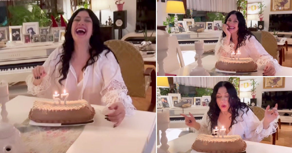 Македонската пејачка сподели видео на кое блеска со широка насмевка, а потоа ги дува свеќичките со број 57. Песната која се слуша во видеото е нејзината песна „Ovo je dan ko rodjendan“.