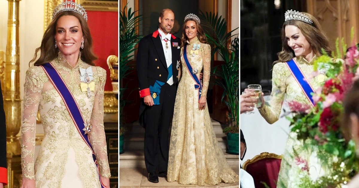 Блеска: Принцезата Кетрин во златно со омилената тијара на принцезата Дијана на банкет во Виндзор