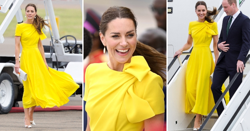 40-годишната Војвотка мамеше погледи со фустан во ведра сончева боја која се асоцира со знамето на Јамајка. Креацијата ја потпишува српската дизајнерка Роксанда Илинчиќ, а Кетрин ја надополни со обувки од брендот Aquazzura и чантичка од Салваторе Ферагамо.