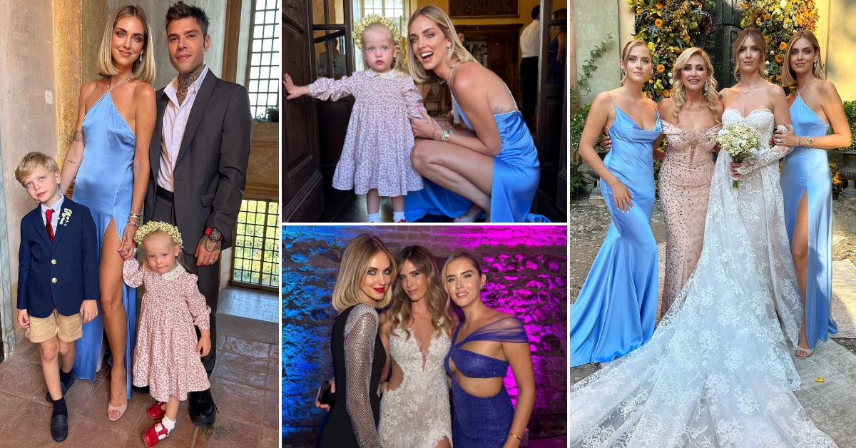 36-годишната модна блогерка шармираше во сина креација од Atelier Emé, брендот кој ги дизајнираше и фустаните на нејзините сестри и мајка ѝ. Таа објави фотографии на кои позира со сопругот Федез и децата.