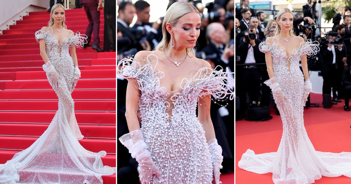 На црвениот тепих на третиот ден од филмскиот фестивал, 33-годишната блогерка шармираше во фустан со бисери од косовскиот дизајнер Валдрин Сахити.